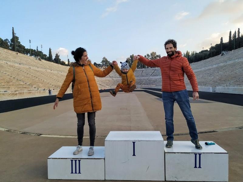 y luego corrimos por la pista de atletismo y nos hicimos la correspondiente foto con el podium.