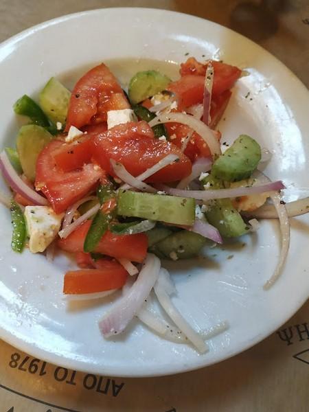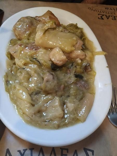 Después de pasar la mañana allí nos fuimos al Restaurante Achilleas, en el que estuvimos el primer día y nos encantó, volvimos a comer ensalada griega, uno de sus platos del día que en este caso fue cerdo con chalotas y la musaka!