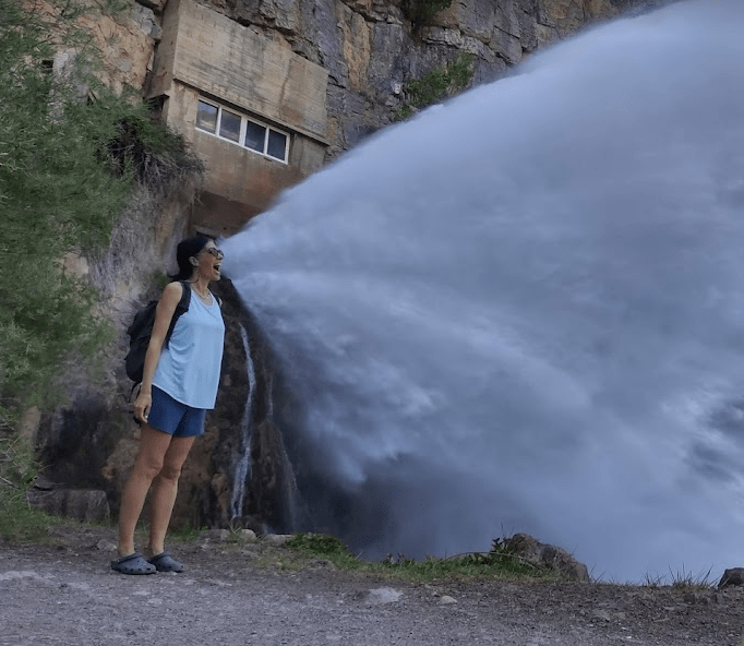 Nos fuimos a la presa que estaba cerrada y sólo salía un chorro impresionante.