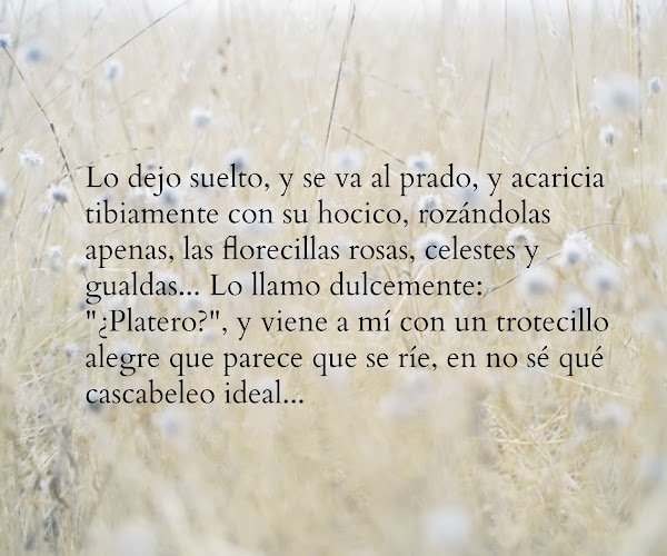 Algunos días incluso sólo lograba leer un par de capítulos porque aquellos párrafos me desarmaban por completo y rompía a llorar... y no de pena, sino de "belleza", porque con Platero y yo descubrí que alguien había escrito cosas que yo había vivido y sentido pero que desconocía que se podía llegar a expresar con palabras, y aquello me impresionó...