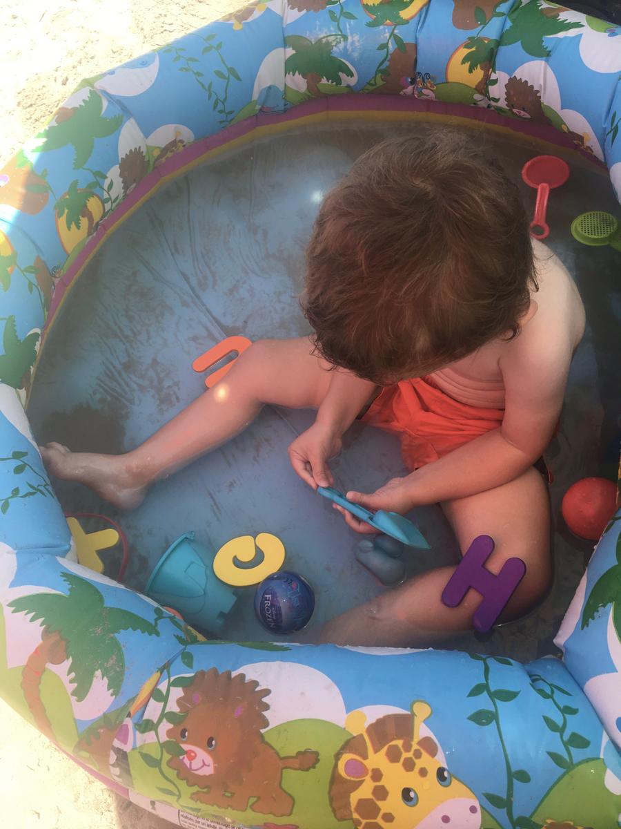 No olvides la piscina hinchable: Si quieres un momento en calma bajo la sombrilla la piscina hinchable te viene de maravilla. El bebé podrá refrescarse y jugar allí tranquilamente siempre bajo tu supervisión.