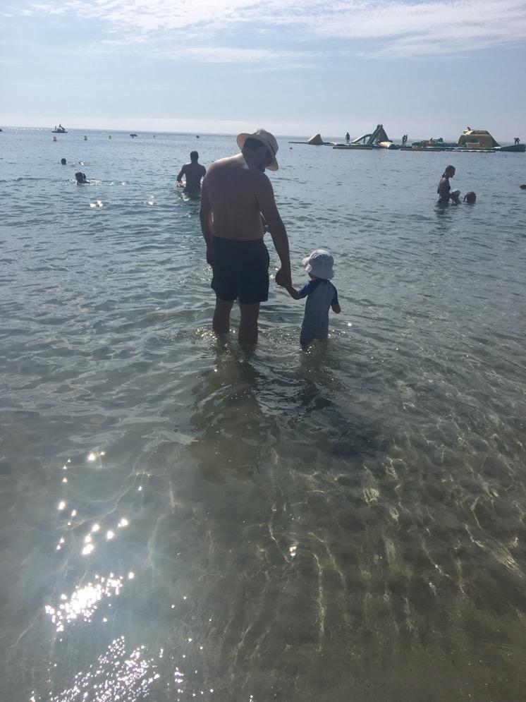 Recuerda que la piel de tu bebé es muy delicada y no puedes confiarte. Nosotros le aplicamos crema antes de llegar a la playa, después del baño o cada dos horas (se convierte en ‘el niño crema’ -risas-)