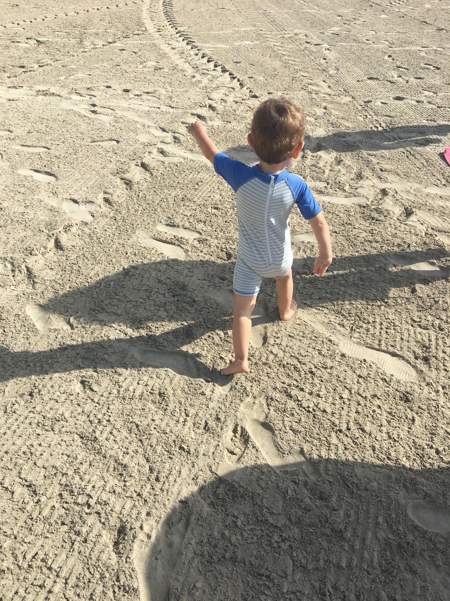 Además, también le tenemos una carpa pequeña que le hemos comprado en Hema que nos viene de maravilla para que se pueda sentar en la arena, o tomar una siesta y a la vez estar protegido del sol.