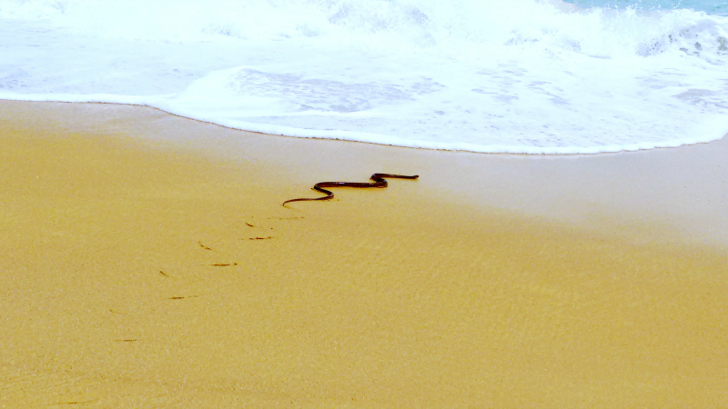 Al salir del agua no era un palo, era una cobra que se dirigía hacia el agua.