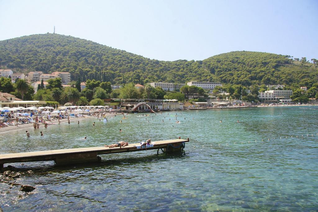 La playa tiene vistas a la zona norte de Dubrovnik y al puente de Dubrovnik.