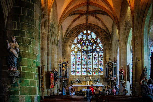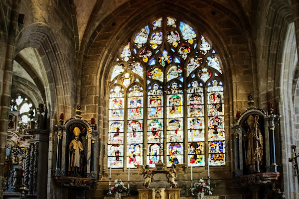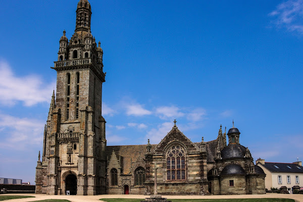 Es uno de los más monumentales de Bretaña. Fue construido en 1555 a la entrada del recinto parroquial. Muestra diferentes escenas de la vida de Jesús, desde la Anunciación hasta la Resurrección, llenas de personajes con detalles sorprendentes, como los vestidos bretones del S.XVI, sobre un enorme pedestal de puerta triunfal, tal y como has podido apreciar en la foto de portada.