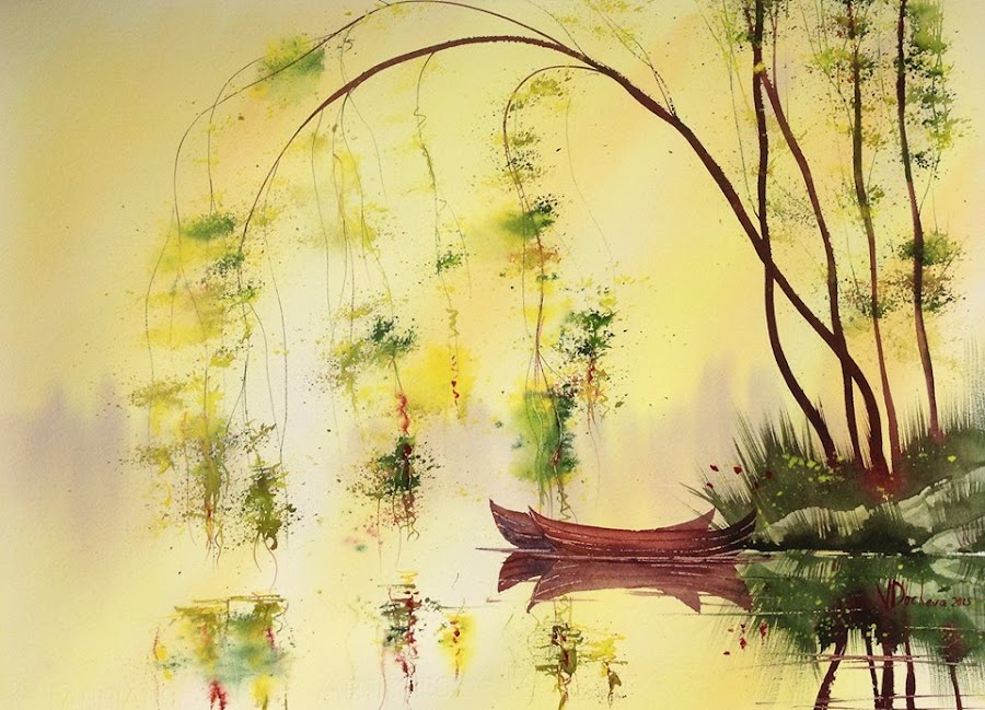 entre los árboles torciendo, el suelo de pasada de verdura vistiendo y con