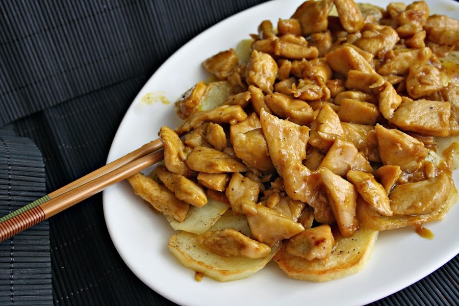 4. Por último echamos el zumo con el azúcar y el vinagre al pollo, subimos el fuego y removemos hasta que la salsa se quede espesa y el pollo la absorba. Ya tenemos el pollo listo!!