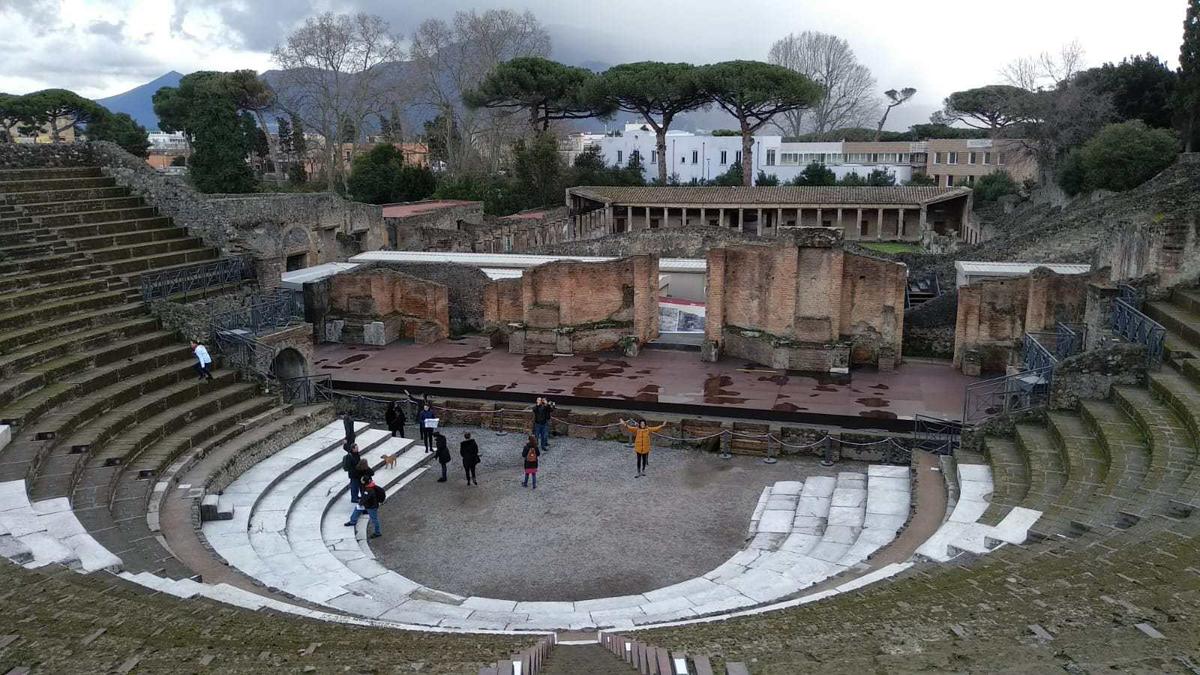 Pompeya como todos sabemos era una ciudad de la región de Camapnia que junto con Herculano y muy cerca de Nápoles fue enterrada por la Violenta erupción del Vesubio el 24 de agosto de 1979,así muchos de sus habitantes fallecieron debido al flujo pirolástico, en la visita aún se puede ver bolas esféricas de lava volcánica.