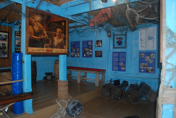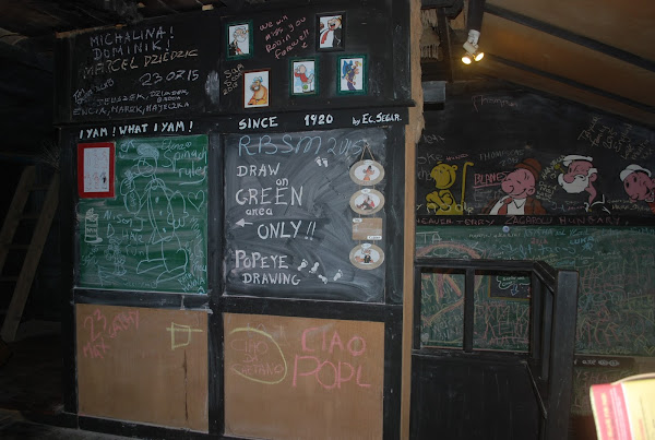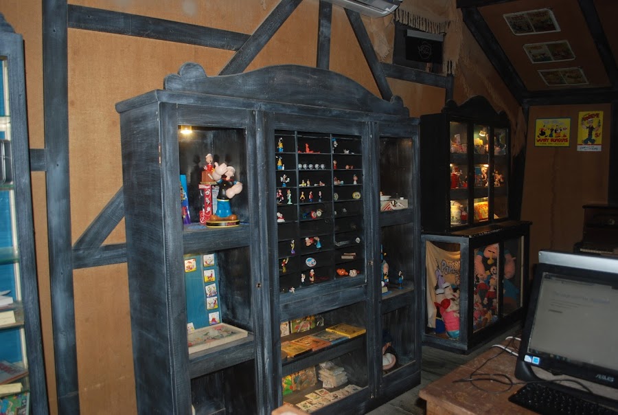 En esta casa había una burrada de muñecos y cosas de Popeye, el techo estaba decorado con páginas de sus comics y había una mini sala de cine donde se proyectaba la peli.