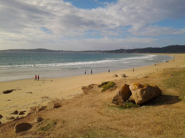 Al ir de vuelta para el hotel desde el Grove pasamos por la playa de la Lanzada. Es una playa magnifica, grande y semi salvaje, ya que no está nada explotada. Y aunque no hacía muy buen tiempo había mucha gente paseando y algún atrevido metido en el agua. Si quereis ampliar información aquí en este link: http://www.turismogrove.es/es/playas/playas_de_bandera/A_Lanzada/#sit