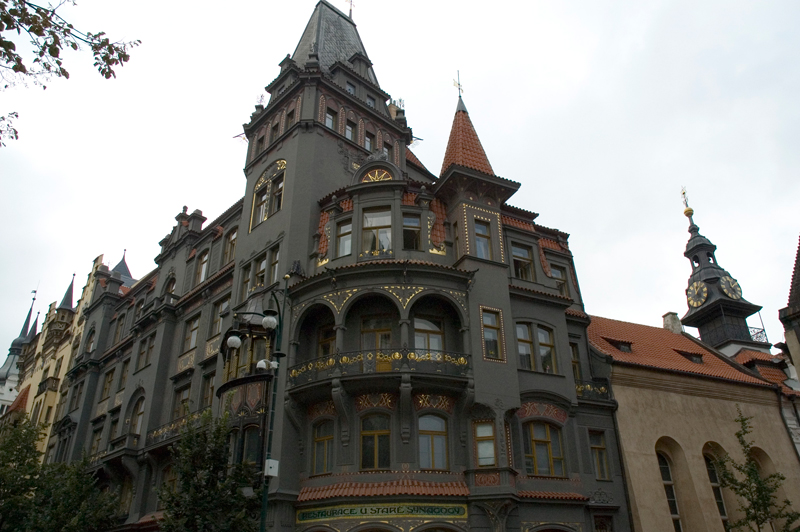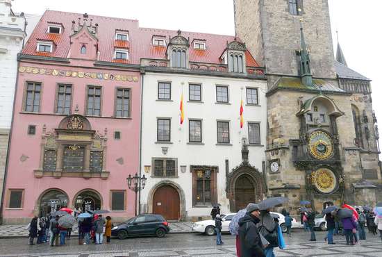 Junto a la casa está el Ayuntamiento viejo, radnice, lo componen 4 edificios y la torre, de estilos renacentista y gótico. Actualmente está reservado para actividades culturales especiales y es también sede de la Oficina de Turismo de Praga. Al principio el ayuntamiento era sólo una casa y posteriormente fue adquiriendo más edificios, de ahí la rica variedad que tiene en todo su conjunto. En el primer piso se construyó una capilla gótica que sobresale en la plaza. Se puede visitar la torre, la capilla y ver el funcionamiento del reloj.