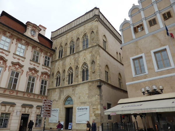 Casa de la campana de piedra.Casa gótica del siglo XIII. Aquí habría vivido la reina Elizabeth I de Bohemia, madre de Carlos IV. Su nombre se debe a la réplica de una campana que tiene en una de las esquinas. Según cuenta la leyenda se puso allí después de caer una de las torres de la Iglesia de Tyn para avisar al rey Juan de Luxemburgo que podía entrar con su ejército en la Ciudad Vieja y tomarla sin violencia. El edificio fue entregado a la Galería de la Ciudad de Praga, que desde entonces se encarga de realizar exhibiciones de arte moderno y contemporáneo y eventualmente conciertos.