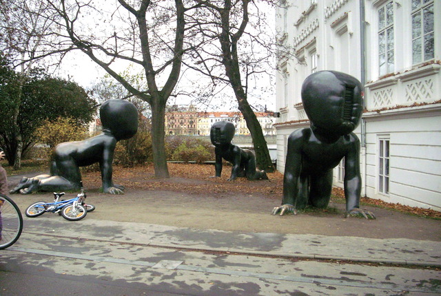 La torre de Zizkov, torre de televisión. Los espeluznantes bebes representan la joven república checa intentando superar el poderoso régimen totalitario comunista, representado por la monstruosa torre de televisión, hay diez bebés escalando la antena y sus bebes pueden ser vistos por toda la ciudad, hace dos años fue nombrada en la lista de los edificios más feos del mundo por “The Telegraph”.
