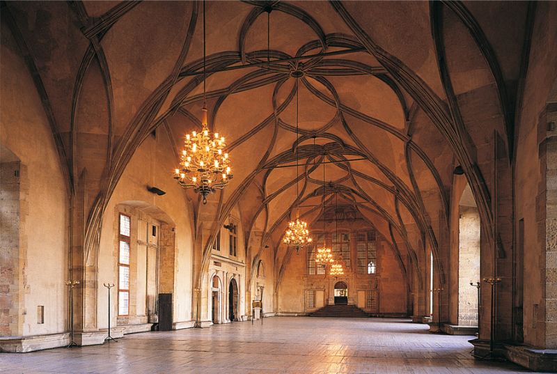 Antiguo palacio real, Starý Kralovský Palac. Construido bajo el reinado de Ladislao Jagellón entre 1492 y 1502, el espacio más deslumbrante del Palacio Real es la Sala Vladislao. Se mezclan elementos decorativos del gótico flamígero y del primer periodo renacentista. Destaca su bóveda nervada, la sala alberga las elecciones presidenciales y continúa sirviendo de sede de las más importantes ceremonias de Estado. Dentro está la Capilla de Todos los Santos, el ala Luis, la sala de la dieta, la sala de los registros.