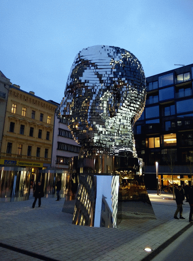Monumento a Franz Kafka. Esta estatua que no para de moverse, se inauguró el 31 de octubre del 2016. Representa la cabeza del escritor. Se halla en la Avenida Nacional, Narodni trida, sobre la estación de metro.