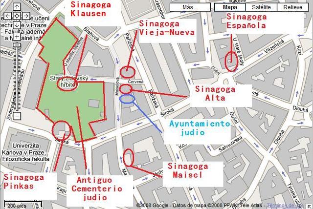 Se encuentra junto a la ciudad vieja dirección norte. La comunidad judía de Praga fue una de las mayores de Europa, llegando a alcanzar los 180.000 componentes.