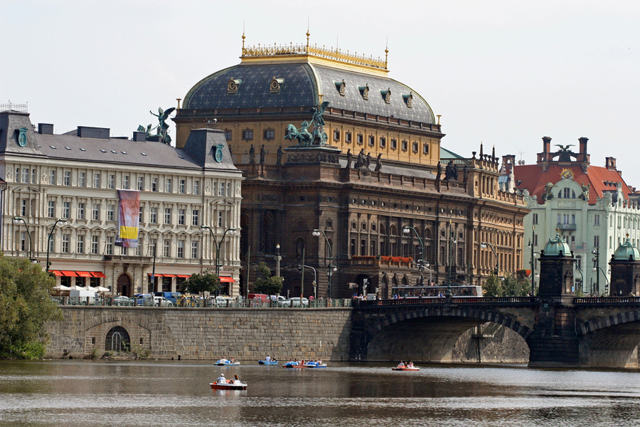 En los alrededores junto al puente Jiráskuv nos encontramos con la casa Danzante, los arquitectos que la hicieron la rebautizaron como Fred & Ginger por la semejanza de su forma con las figuras de estos famosos bailarines de Hollywood. De estilo desconstructivista, son dos edificios entrelazados.