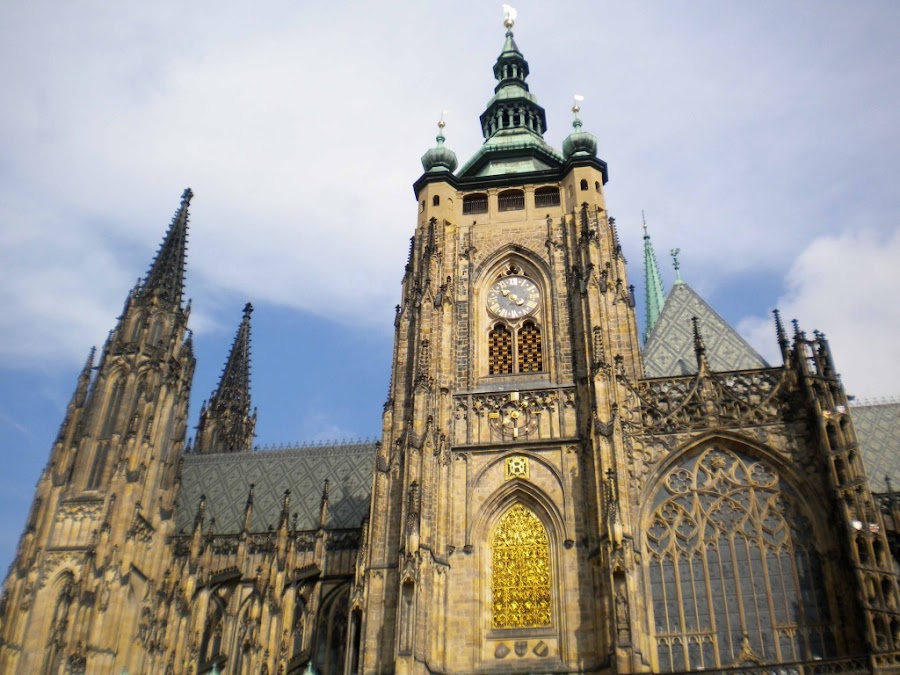 Catedral de san vito. Es la catedral más importante de Praga, sita en el interior del castillo, de estilo gótico. Alberga la tumba de Wenceslao IV (El rey bueno), las Joyas de la Corona, y es el lugar de coronación de los reyes de Bohemia. Se puede subir a la torre por una escalera de caracol. La torre más elevada mide 99m y las otras dos torres gemelas 80m. Entrada gratuita.