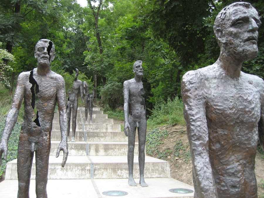 El monumento a las Víctimas del comunismo está en la base del monte. Son siete estatuas masculinas que representan diferentes fases en el proceso de destrucción de una persona; la primera estatua está completa, a la siguiente le falta una parte, a la tercera otro pedazo, y así hasta desaparecer. Una placa de bronce muestra el número estimado de personas que fueron arrestadas, encarceladas o muertas durante el régimen.