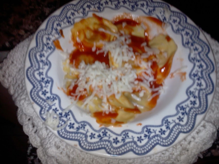 Los ravioli de queso y cebolla caramelizada los comieron mis hijos otro día, con la salsa sencillita que ya os comenté.
