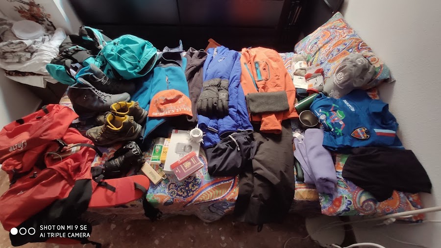 Estoy ya preparando lo que voy a llevar en las mochilas, forros polares, chaquetas, ropa impermeable, botas, camisetas interiores, guantes, etc, etc.