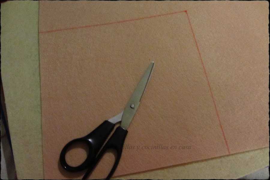lo primero como siempre, recortar en papel y con ayuda de alfileres, recortar el fieltro.