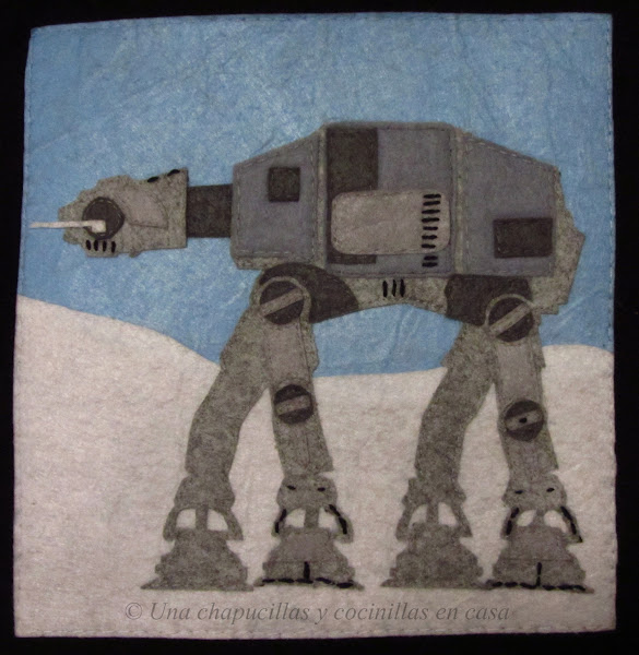 Bueno os traigo otro par de cuadros de la manta (¡¡por fiiiin!!) como comentaba en la entrada anterior el AT-AT me costo hacerlo porque al igual que el halcón milenario tiene muchos detalles para darle un toque mas realista, entonces hay que recortar trozos mas pequeños de fieltro e ir cosiéndolos, y no es difícil, pero se tarda mucho mas que por ejemplo el jawa, que son 4 colores y listo.