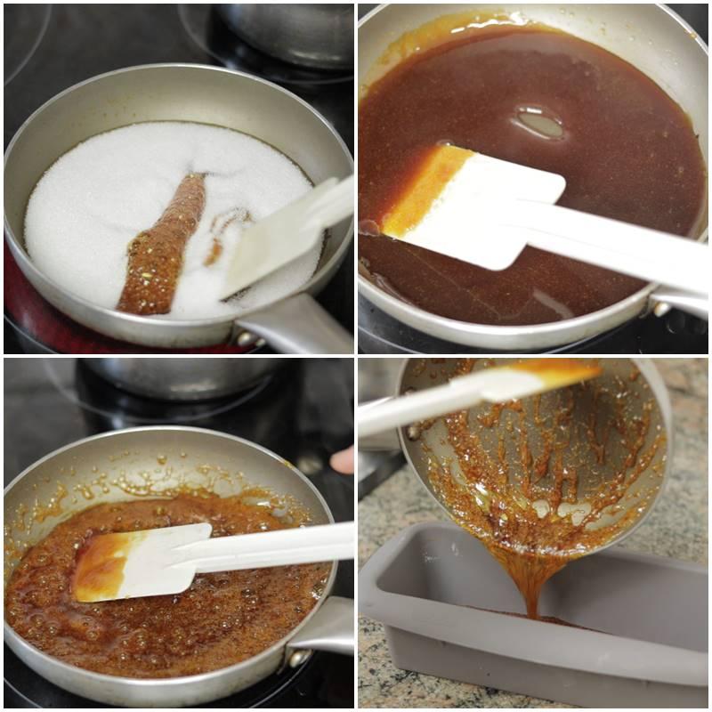 Rápidamente cuando tengamos listo el caramelo, lo vamos a verter en el molde y con extrema precaución, lo iremos llevando por todos sus bordes.