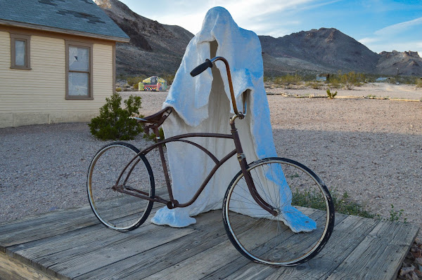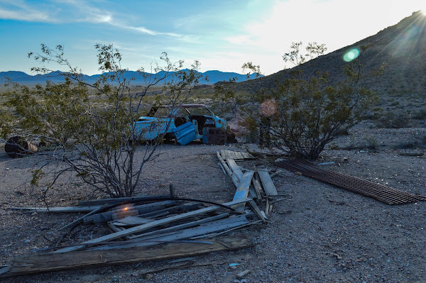 Dejamos atrás el pueblo de Rhyolite. Os imaginais si hubiéramos pinchado o el coche no hubiera arrancado... ¿Dormir en el pueblo fantasma o caminar 10 km por el desierto anocheciendo?