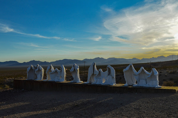 Esta obra de arte fue de escalofrío, ver todos los fantasmas en medio de la nada y atardeciendo. Daba la impresión de que en algún momento saldría alguien corriendo a por nosotros.