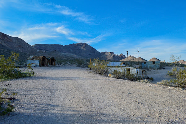 Rhyolita fue un pueblo minero construido a partir de los descubrimientos de yacimientos de la roca volcánica de riolita, rica en sílice. Se construyó una gran mina, edificios, un banco, un colegio para 250 niños, tiendas, hoteles, una estación de tren, una cárcel, etc, etc. En 1907 llegó la electricidad al pueblo y se construyeron dos plantas eléctricas, una planta de hielo y una fundición.