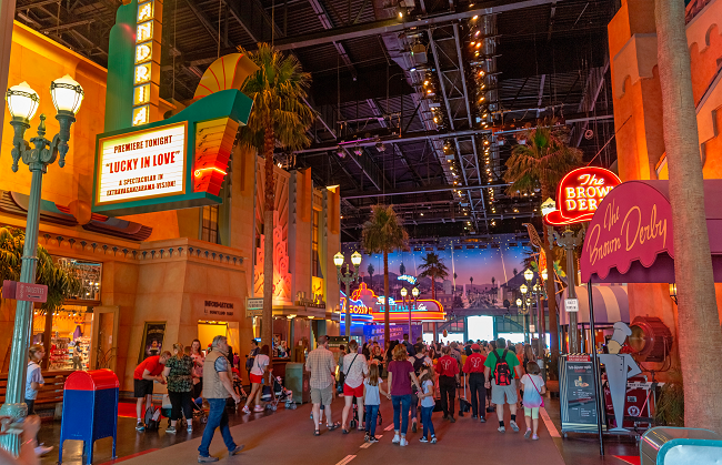 Nada más entrar y ya estarás paseando por Hollywood entre decorados de película. Atravesarás una avenida ambientada en Los Ángeles al atardecer con sus restaurantes, boutiques de Disney al más puro estilo californiano y coches americanos de época en una antigua gasolinera de la ruta 66. Aquí está el restaurante más grande de Disney Studios con una capacidad para 600 personas que viene muy bien para esos días de lluvia (toda esta zona está cubierta).