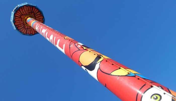 Si bien se puede subir un conjunto de escalones empinados, la mejor manera de llegar a la cima es simplemente sentarte en el elevador redondo que, gradualmente, al elevarse y girar, se convierte en una plataforma de observación. Es una estructura particularmente atractiva por la noche cuando está iluminada porque se asemeja a la representación maya de una flor.