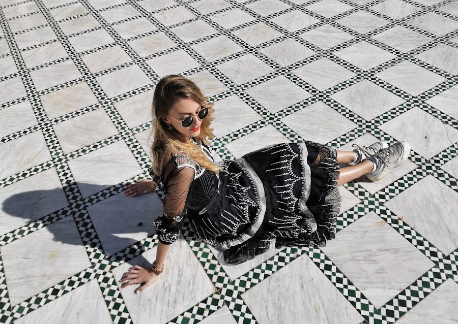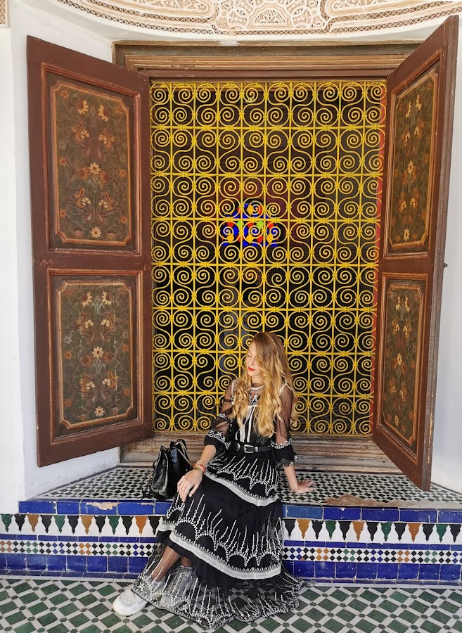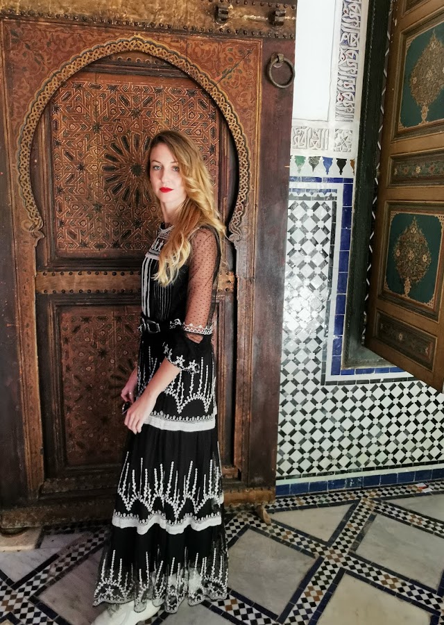 Tras un paseo por la medina y el barrio judío. visitamos el Palacio de Bahia. Fue erigido en 1880 por el gran visir Sidi Moussa para su favorito (Bahía significa "hermosa") y sus 24 concubinas oficiales. La mayor parte del trabajo se realizó bajo las órdenes de su sucesor, Ba Ahmed. Una vez completado, el palacio supera en riqueza a todos los monumentos del reino, y se dice que el joven rey, Moulay Abd el-Aziz, muy molesto, ordenó el saqueo de Bahía en 1900. El arquitecto local, El-Hadj Mohammed ben Makki el-Misfoui, inspirado en el arte andaluz, reconstruye el palacio en varias etapas y lo termina después de siete años de trabajo.