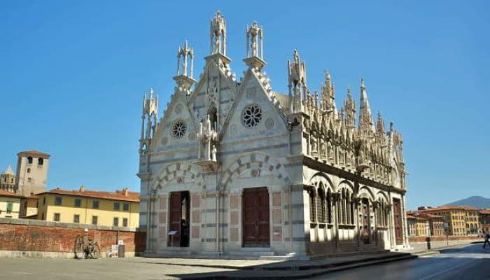 El edificio está coronado por tabernáculos que contienen estatuas, algunas de ellas ahora reemplazadas por copias. El original de la Madonna del Latte está también en el museo; La que está dentro de la iglesia es una réplica. Es un hermoso lugar que ver en Pisa.