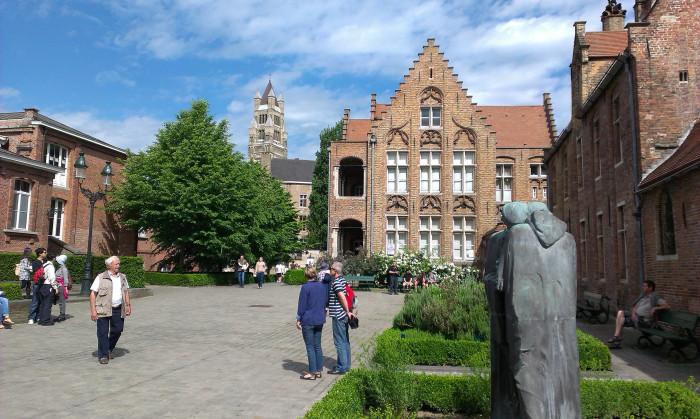 A pocos metros del Minnewater veréis el Beaterio o Beginague: una mini ciudad amurallada del siglo XIII, dentro de la propia ciudad de Brujas. En él vivían mujeres solteras, viudas o huérfanas de los cruzados, autosuficientes, que no querían recluirse en un convento. Estuvo en funcionamiento desde 1245 hasta 1928.