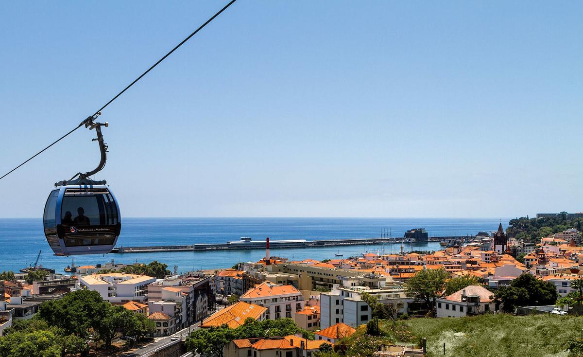 El teleférico de Madeira es una de las atracciones turísticas más populares que visitar en Funchal. Los pasajeros son llevados en un paseo de 15 minutos sobre la capital de Madeira y hasta las colinas circundantes. Las cabañas brindan excelentes vistas de 360 grados de la ciudad de abajo, el espectacular paisaje montañoso y un resplandeciente océano azul.