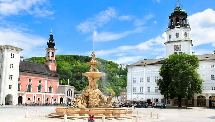 En el corazón del Casco Antiguo se encuentra la Residenzplatz. Esta es una de las plazas más grandes de la ciudad y un buen lugar para comenzar a explorar las atracciones de esta hermosa ciudad. El punto focal de la Residenzplatz es la impresionante Residenzbrunnen. Esta es una obra maestra de mármol hecha por un escultor italiano en 1661. Es la fuente barroca más grande al norte de los Alpes.