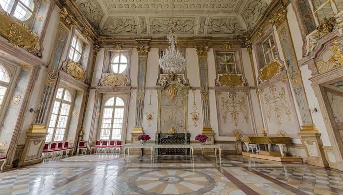 De particular interés son el Salón de los Caballeros (Rittersaal), el Salón de Conferencias (Konferenzsaal) y el Salón de Audiencias (Audienzsaal) con tapices flamencos del siglo XVII y finos muebles parisinos. Además el Salón Blanco (Weisse Saal), con sus magníficos ornamentos de estuco en estilo Luis XVI de 1776; la Sala de funciones (Gesellschaftszimmer), con sus alfombras de seda del siglo XVIII; y la Sala Imperial (Kaisersaal), con sus retratos de los emperadores del Sacro Imperio Romano y la dinastía de los Reyes de los Habsburgo.