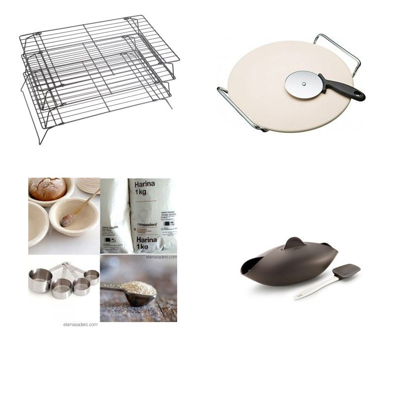 Regalos cocinillas: Rejilla para enfriar, piedra para pan/pizza, kit primer pan, kit panera Lekué.