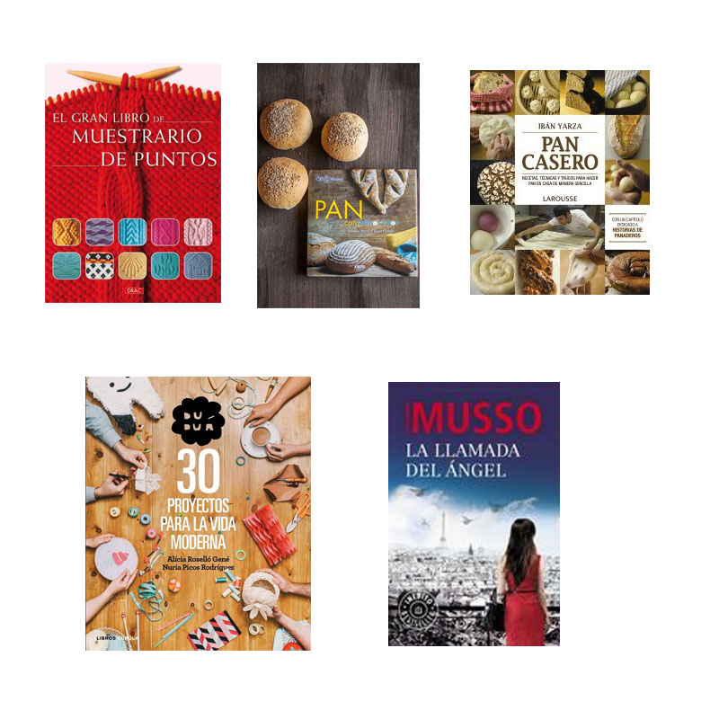 Libros: El gran libro de muestrario de puntos, Pan con webos fritos, Pan casero de Ibán Yarza, 30 proyectos para la vida moderna, La llamada del ángel.