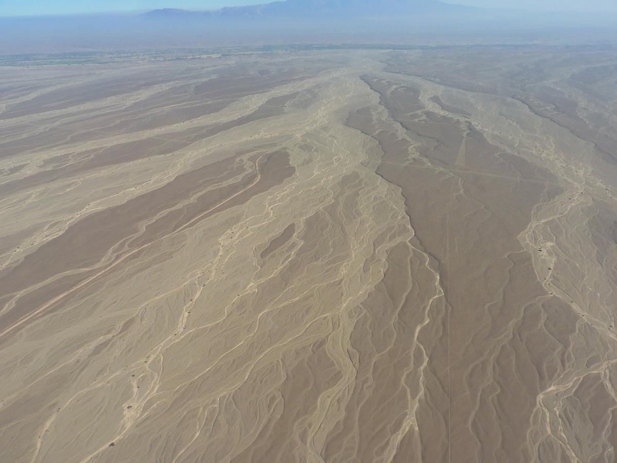 Ciertas áreas de las pampas parecen una pizarra bien-usada, con líneas sobreponiendo otras líneas, y los diseños cortados con líneas rectas de origen antiguo y más moderno.