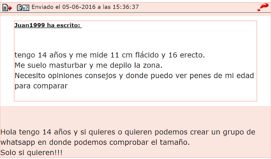 A tu edad es normal que necesites descubrir tu cuerpo como una parte primordial de tu identidad sexual. En la pre adolescencia se buscan respuestas continuamente y se explora de miles de maneras sobre todas aquellas preguntas que nos inquietan, y mucho más sobre sexualidad, que aun sigue siendo un tema tabú. Pero... ¿Realmente eres un chico de 14 años? ¿Qué necesitas ver fotografías de penes de chicos de tu edad? ¿No tienes amigos con los que comparar tus medidas? ¿No hacen gimnasia en tu cole? ¿No te duchas con tus compañeros que necesitas buscar fotos en Internet?