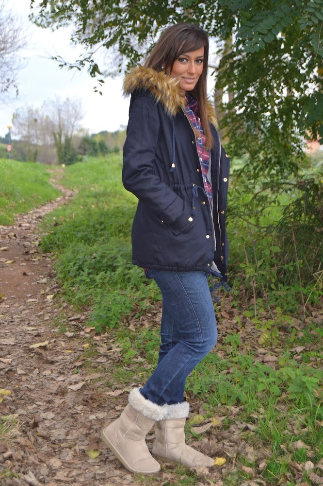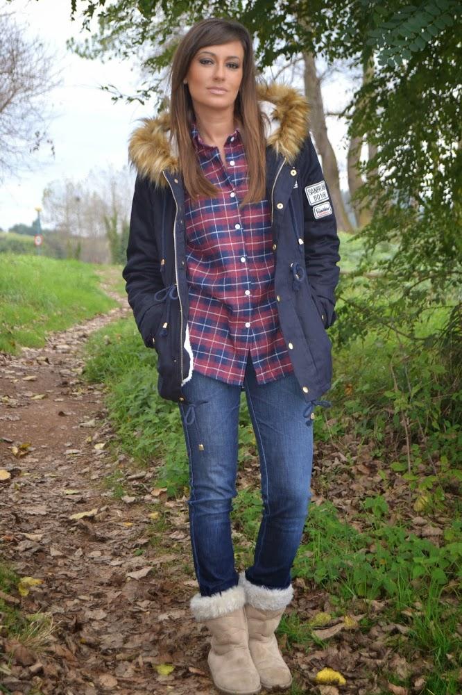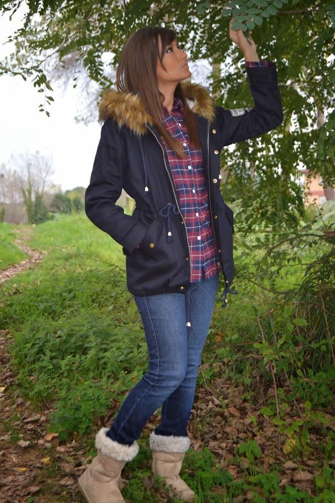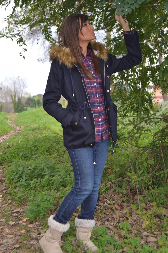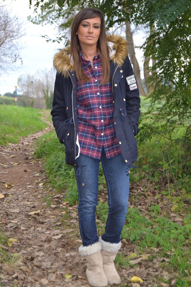 El punto reside en utilizar esta prenda, asequible para todo tipo de público, de manera desenfadada y con mucha actitud. En mi caso, he decidido combinarla con unos jeans oscuros, unas botas con borreguito y un anorak en azul marino con capucha de pelos y forro, también de borrego que, a mi juicio, encaja muy bien con las dos tonalidades de la camisa (el rojo y el azul).