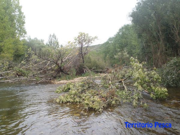 Y así fue que algunos ríos regulados alcanzaron niveles de alerta. El Porma fue uno de ellos y como vemos en las fotografías algunos arboles de la ribera no aguantaron las embestidas.