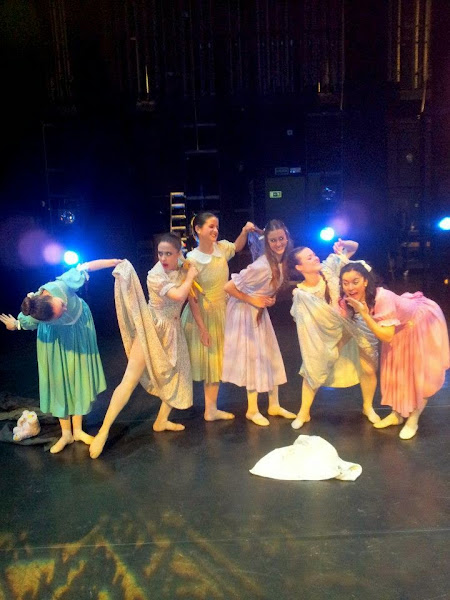 Los copos bailamos mientras caen confeti, soy la de la segunda de la derecha.
