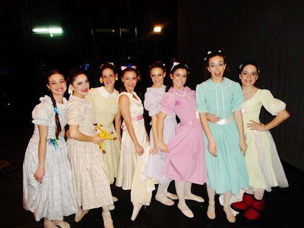 Caracterizadas de Amigas para la primera escena del primer acto.
