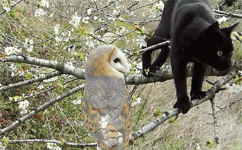 Esta hermosa relación de amistad entre el gatito negro y la lechuza dio la vuelta al mundo, y diversos programas de televisión han recogido estas tiernas escenas que te mostramos a continuación: