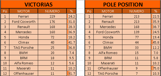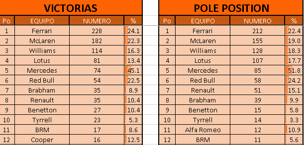 Por otra parte, el equipo Mercedes está un poco más cerca de los líderes históricos en lo que respecta a las pole position, el conjunto alemán ha salido en primera posición 85 veces, es el número 5 en la historia, siendo Lotus, su objetivo a batir más cercano con 107.